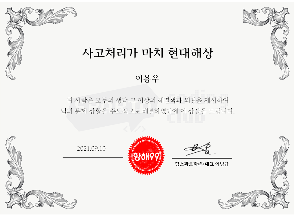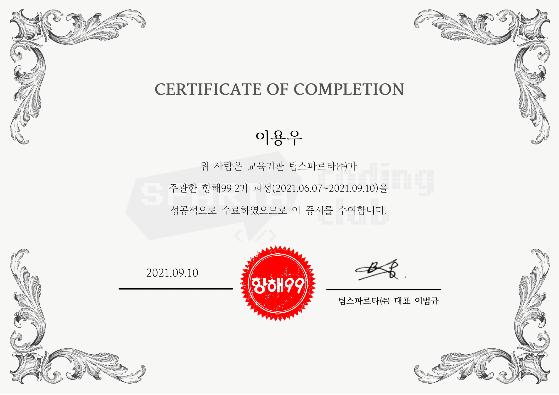- 9/10 (금) 18:00 ~ 19:30 : 항해99 2기 수료식이 진행되었습니다.