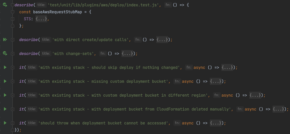 AWS Deploy 과정에서 발생하는 유닛 테스트 코드는 위와 같이 구성되는데, Hook 단위로 테스트 코드를 구성하는 것이 아니라 비즈니스 로직에서 발생하는 중요한 예외 케이스에 대해서 작성하게된다. 따라서, 작성하게 될 유닛 테스트 코드는 “Stack의 상태가 REVIEW_IN_PROGRESS일 때, 에러 메시지가 정상적으로 발생하는가?”를 검증하도록 작성해보자.