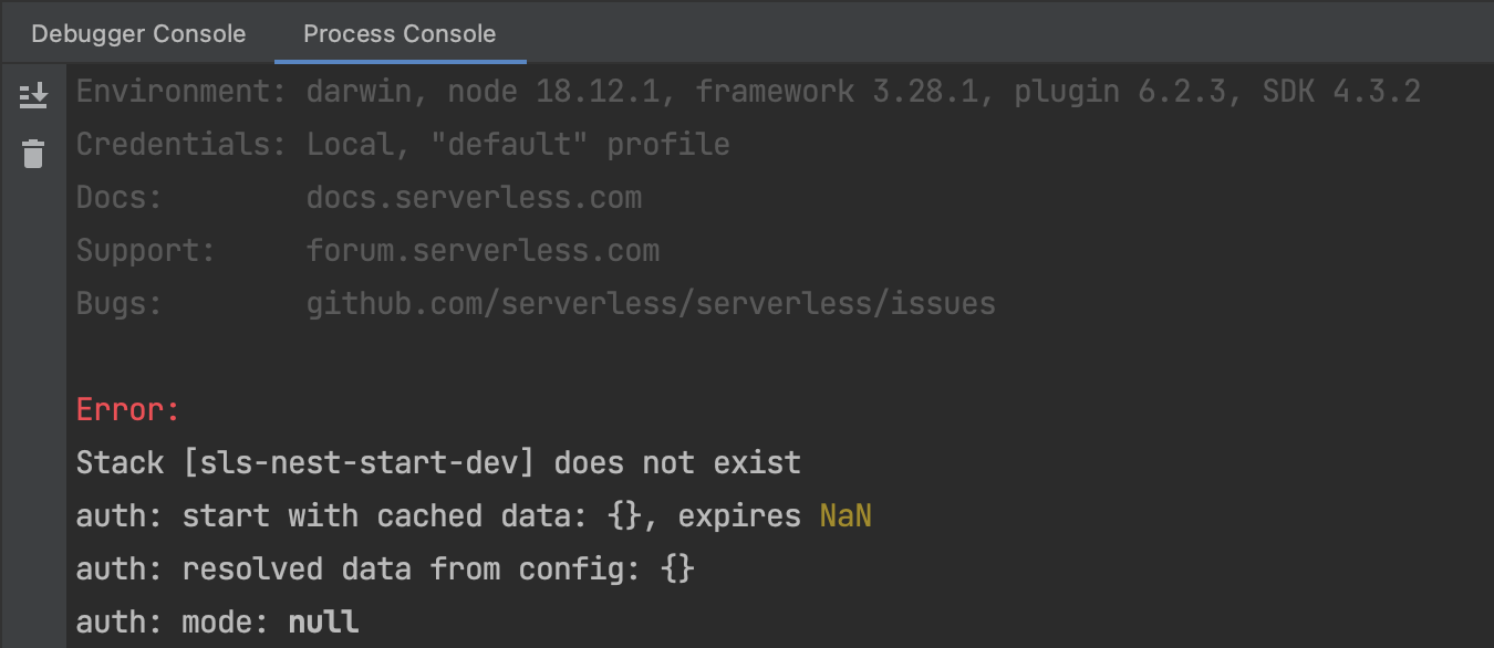 Process Console에서도 정상적으로 에러가 발생하였다. 그렇다면, 이제부터 Serverless Framework의 소스 코드를 하나씩 뜯어보도록 하자.