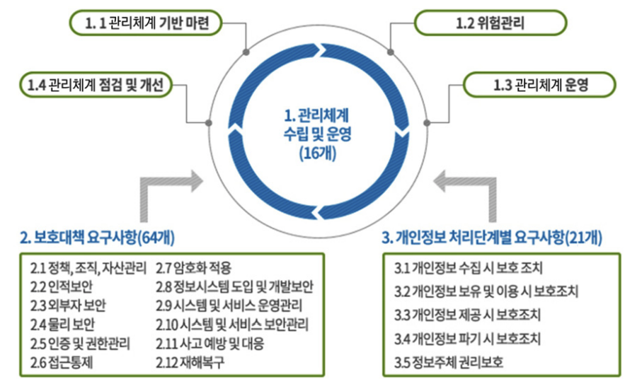ISMS에서는 정보보호를 중점적으로 검증을 진행하였다면, ISMS-P는 개인정보보호에 대한 부분을 중점적으로 검증하는 관리 체계이다. ISMS-P는 사용자 데이터를 안전하게 저장하고 처리하기 위해 어떤 암호화 기술을 사용하는지, 사용자 데이터 접근 시 어떤 보안 프로토콜을 따라야 하는지 등 구체적인 보안 지침을 제공한다.