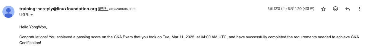 기존에 구입했던 CKA 시험 바우처의 만료일이 한 달도 남지 않아 급하게 공부를 시작하게 되었고, 최종적으로 CKA 자격증을 취득하게 되었습니다. 특히, 25년 2월 18일부터 CKA 시험이 리뉴얼되어 변경된 시험 유형이나 취득 후기가 존재하지 않았습니다.