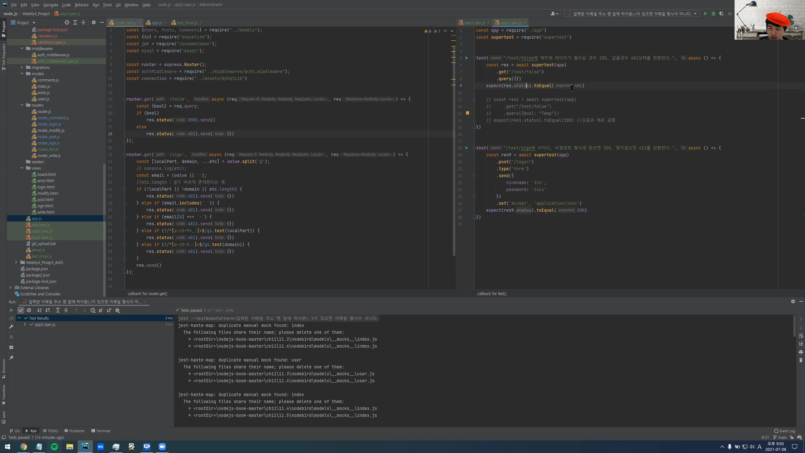 - Supertest, Jest 모듈을 이용해 테스트 코드를 작성해보았습니다.