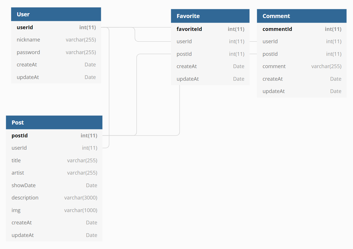 $ npx sequelize model:generate --name Posts --attributes userId:integer,title:string,artist:string,showDate:date,description:string,img:string