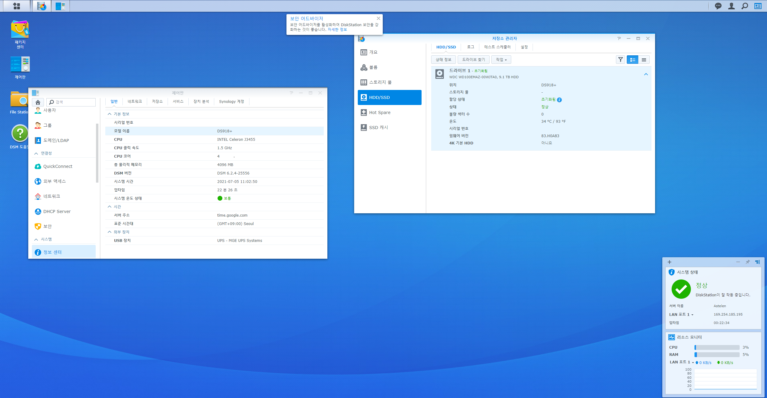갑자기 DSM이 정상적으로 설치되었습니다.